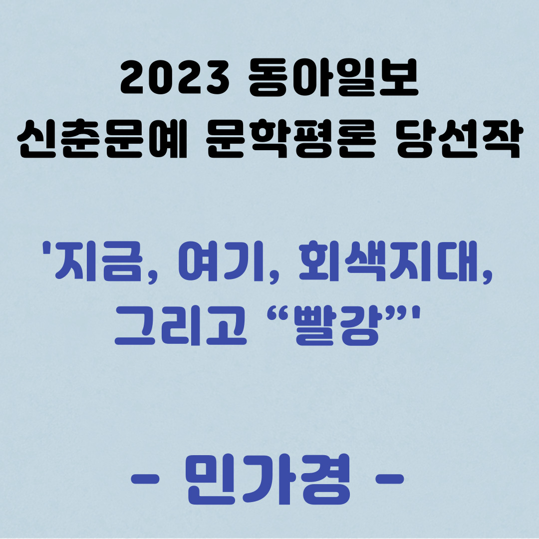 [2023 동아일보 신춘문예 문학평론 당선작] 지금, 여기, 회색지대, 그리고 “빨강” / 민가경
