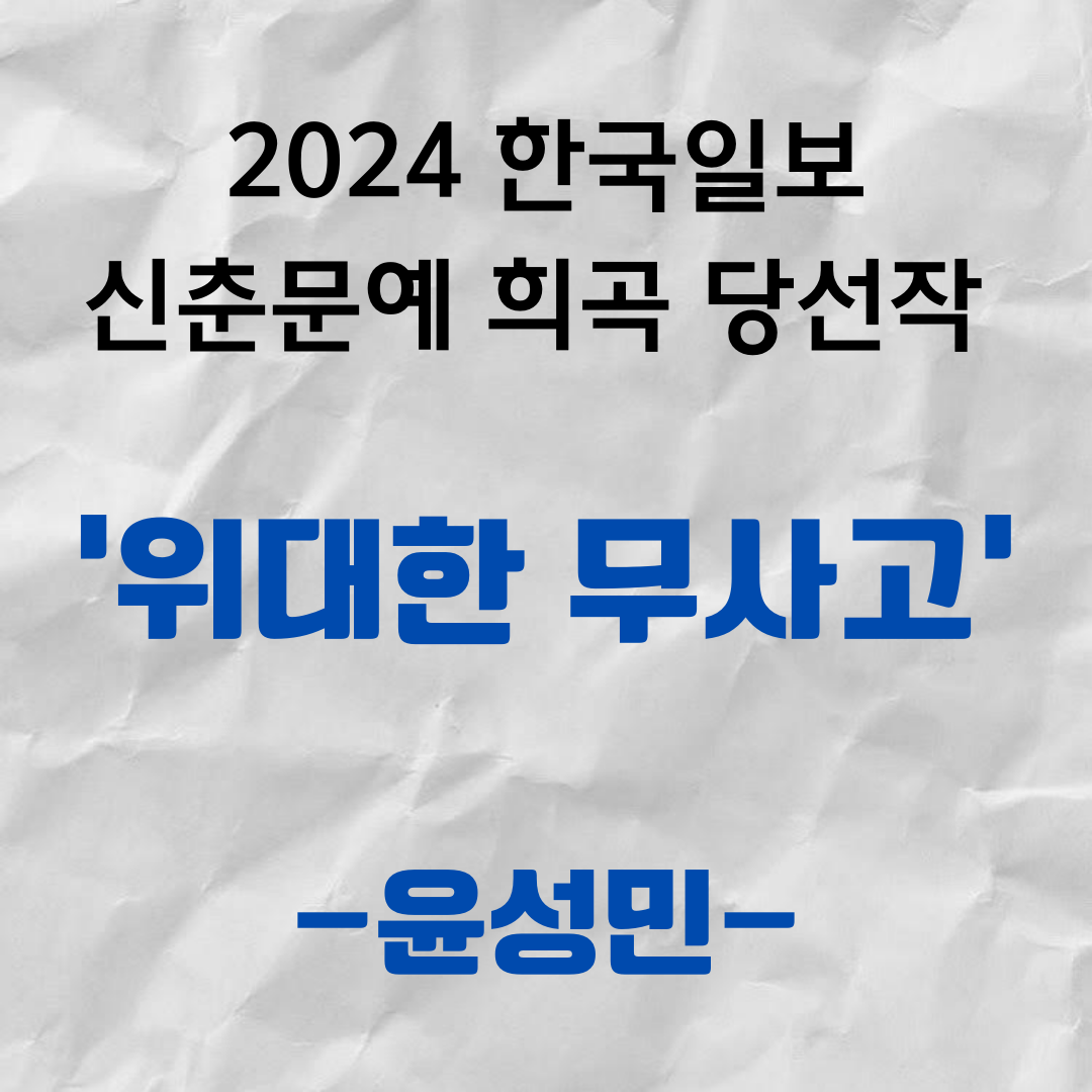 정말 많이 부족한 작품의 좋은 점을 봐주신 심사위원님들과 문학을 하는 자들의 활로를 열어주시는 한국일보에 감사드립니다. 앞으로 얼마나 살 수 있을지 모르겠습니다. 그래도 사는 동안 많이 쓰겠습니다.