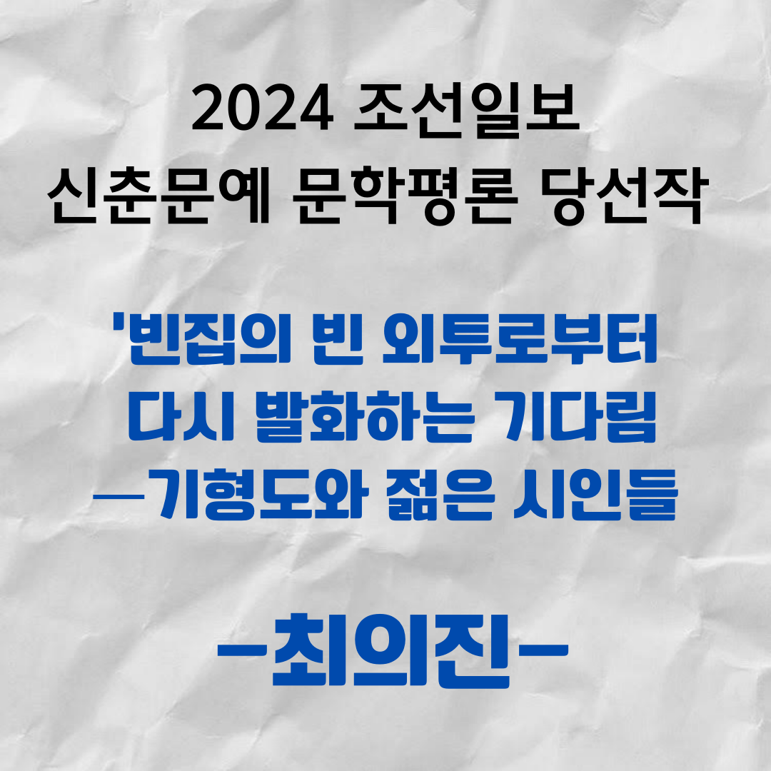 [2024 조선일보 신춘문예 문학평론 당선작] 빈집의 빈 외투로부터 다시 발화하는 기다림―기형도와 젊은 시인들 / 최의진
