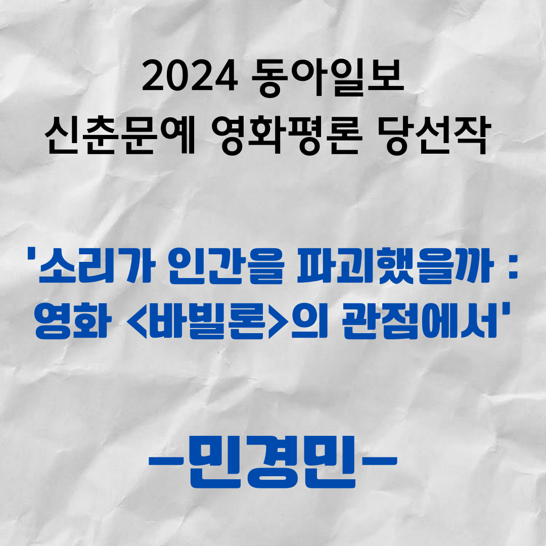 [2024 동아일보 신춘문예 영화평론 당선작] 소리가 인간을 파괴했을까 : 영화 <바빌론>의 관점에서 / 민경민