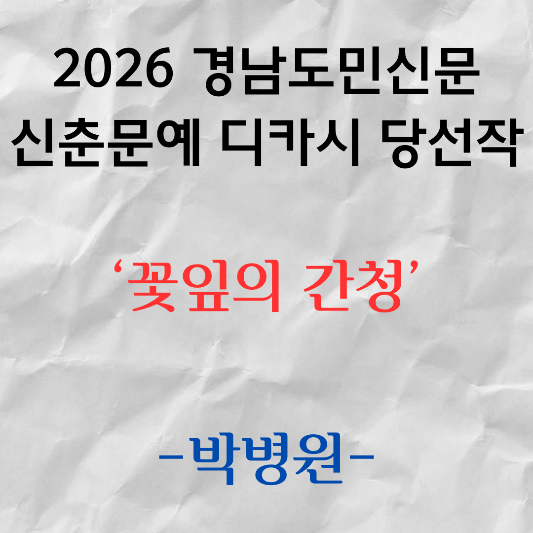 당선이라는 책임감을 무겁게 받아드리며 경남도민신문 신춘문예의 위상에 누가 되지 않도록 더욱 정진하겠습니다.