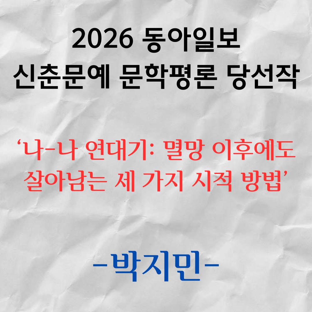 [2026 동아일보 신춘문예 문학평론 당선작] 나-나 연대기: 멸망 이후에도 살아남는 세 가지 시적 방법 / 박지민