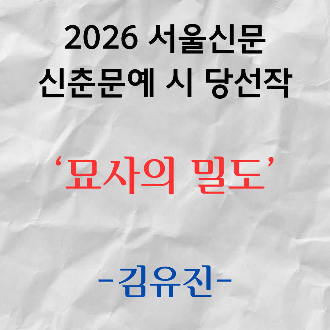 | [2026 세계일보 신춘문예 시 당선작] 크린토피아 / 강하라 (0) | 2026.01.19 |